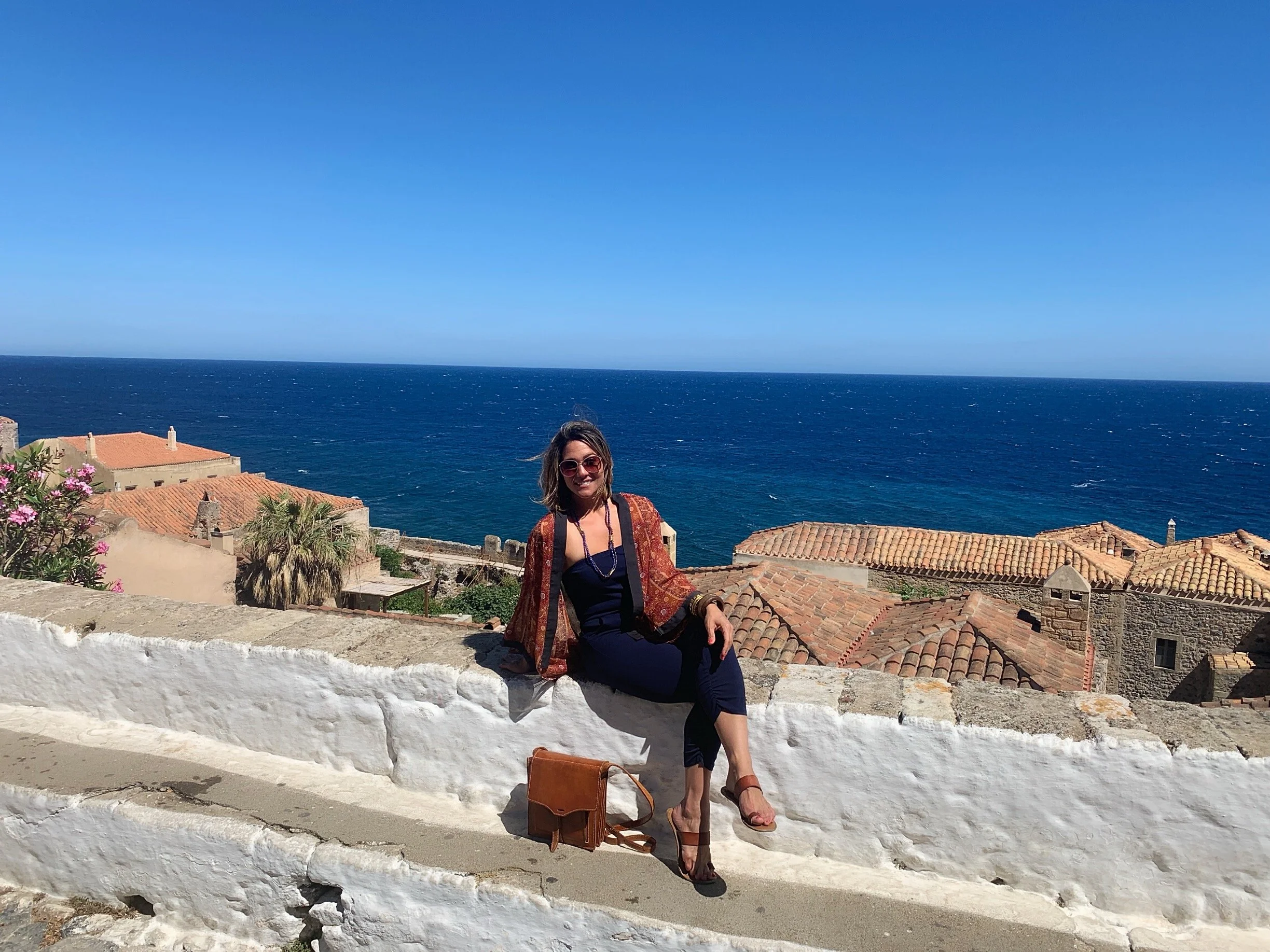 Violeta at Monemvasia Castle, one of her favorite places in Greece.